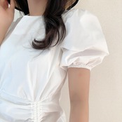 〇パフスリーブ部分やスカート部分のシャーリングがオシャレなデザインです。